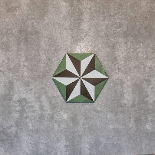 Babylon Starburst Hexagon Green Tiles 18.7cm x 21.6cm