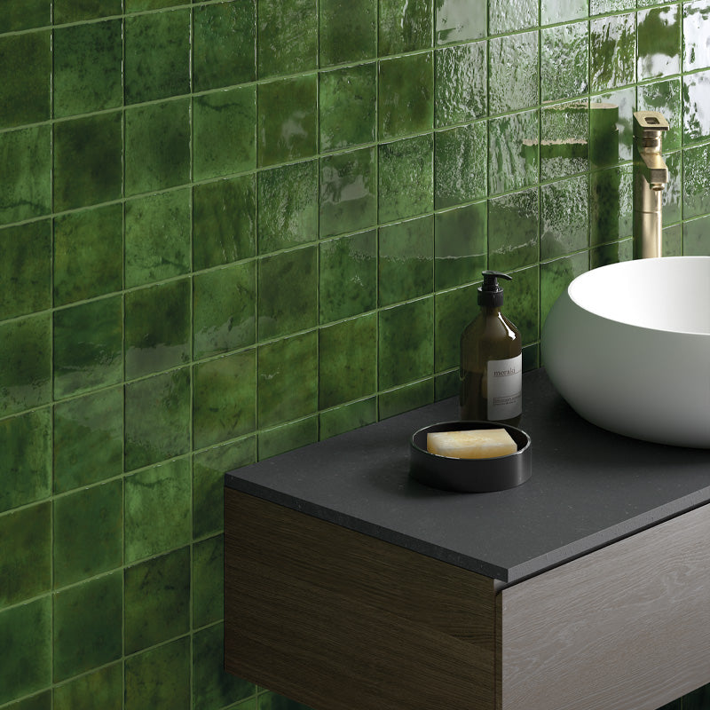 These ceramic wall tiles are suitable for indoor use and work particularly well in spaces where light and reflection enhance the glaze.