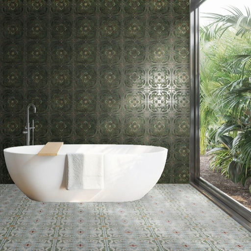 Kintsukuroi Jade Green Embossed Tile 30.5cm x 30.5cm
