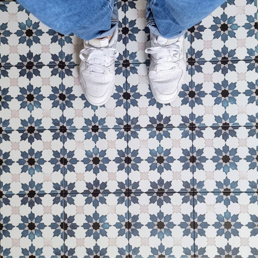 Elevate your space with our Madeira River Blue Moroccan Tiles. These 20cm x 20cm porcelain tiles feature traditional cement and geometric patterns ...