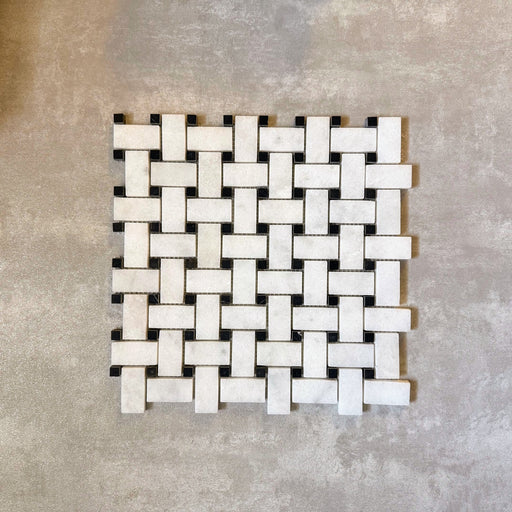 Fayrouz Black & White Basketweave Mosaic | Honed Finish | Natural Marble | 32.5cm x 32.5cm