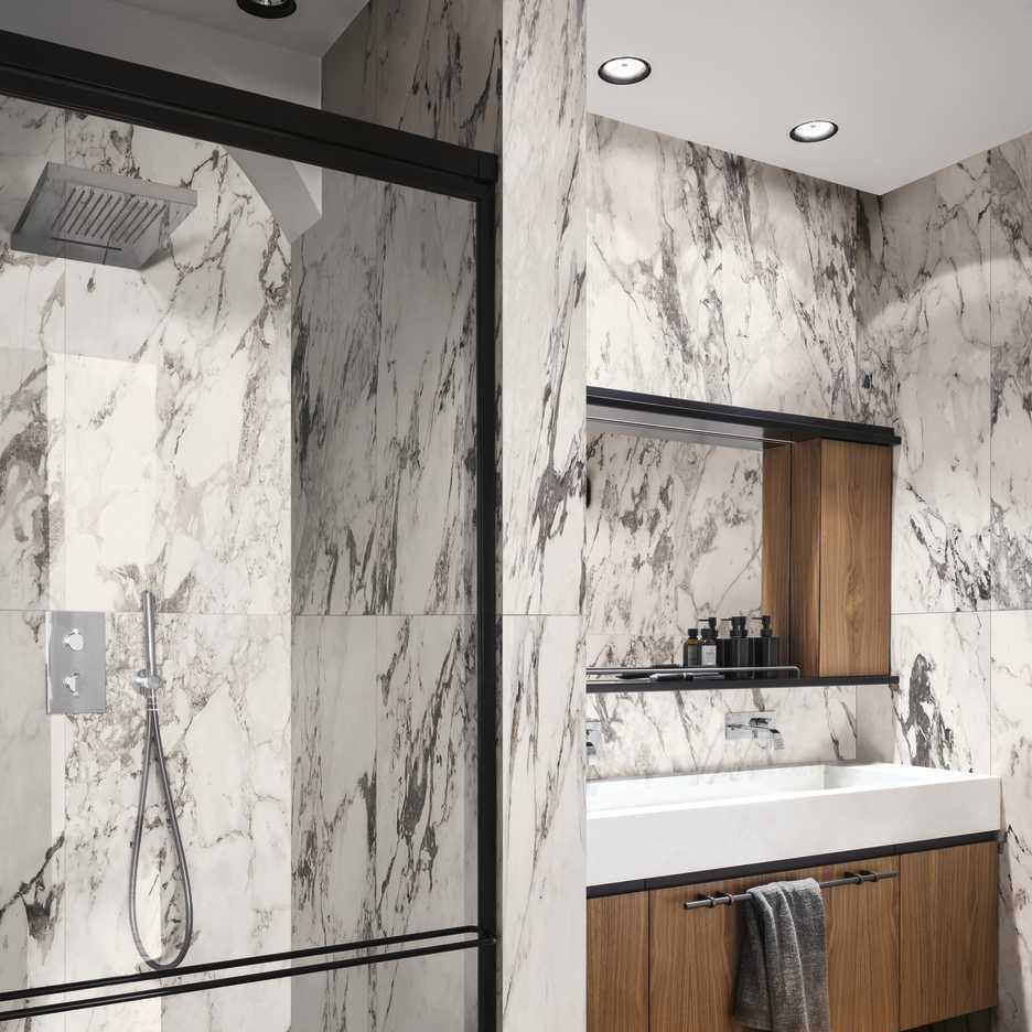 Our Hudson collection celebrates some of the most popular types of marble: Calacatta, Capraia and Statutario by creating a stoneware collection that showcases the beauty of these beautiful marbles.