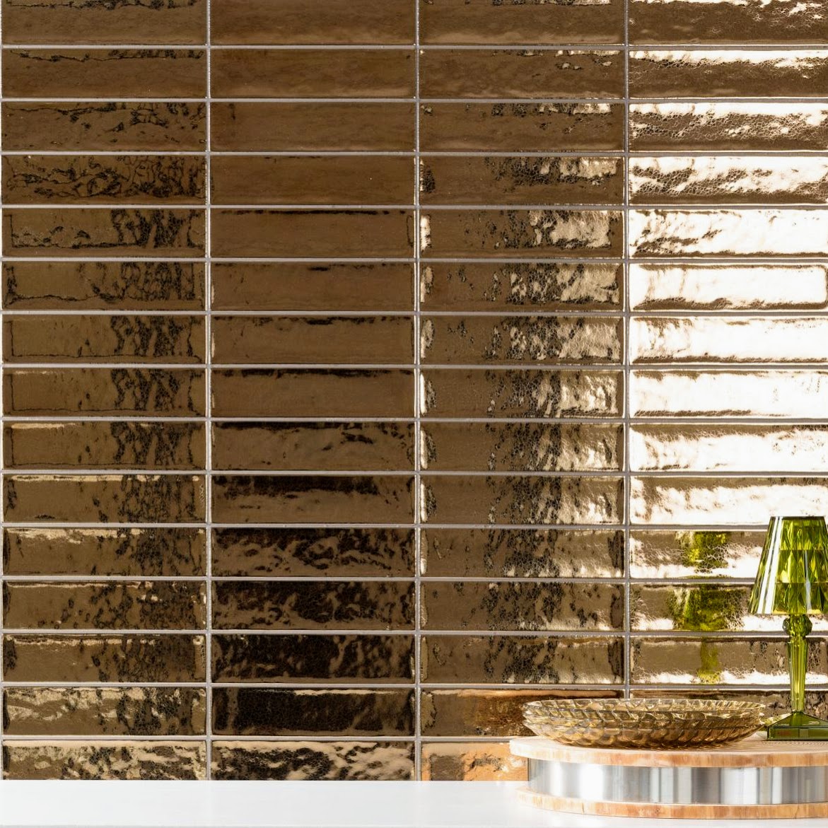 The wall tile collection stands out for its rich colours and depth and a really on trend slim brick format which can be laid in all manner of patterns.