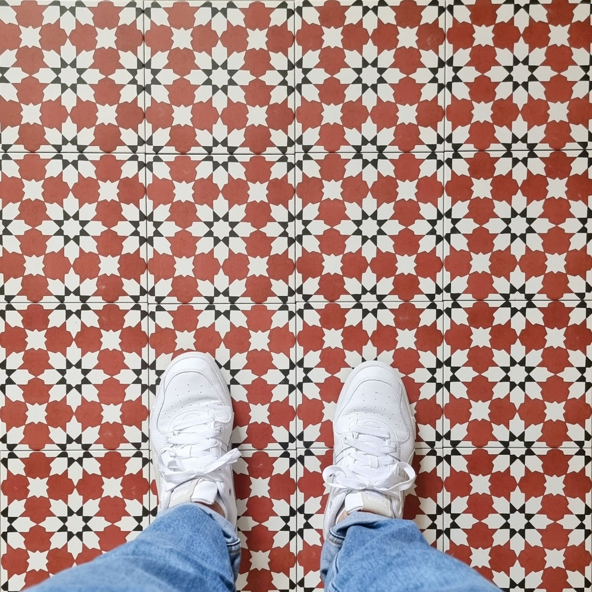 Introducing our Madeira Terracotta Moroccan Tiles - a stunning addition to any space. Inspired by traditional cement and geometric patterns, these 20cm x 20cm porcelain tiles offer both practicality and timeless elegance. Easy to install, maintenance-free, and with an R11 anti-slip rating, these tiles are perfect for any residential or commercial setting, indoors or outdoors. Elevate your space with these exclusive and sophisticated tiles today.