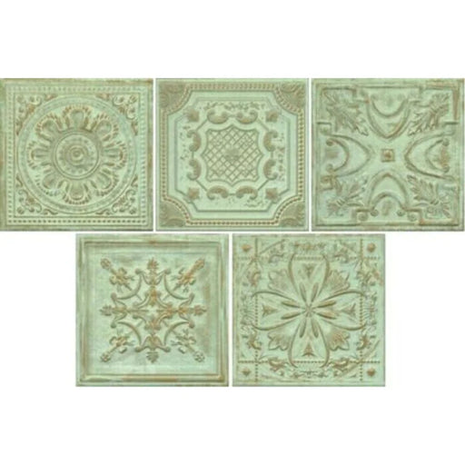 Regency gives the tradition of painted tin tiles a modern facelift by using a subtle metallic glaze to give more depth and detailing within each tile. Regency is a ceramic white body collection consisting of 5 different embossed reliefs in several colours in a 20 x 20 cm format. These tiles are equally at home in wet or dry situations with their bold styling being easy to clean. Being a patchwork collection, the tiles you receive are packed at random by the manufacturer.