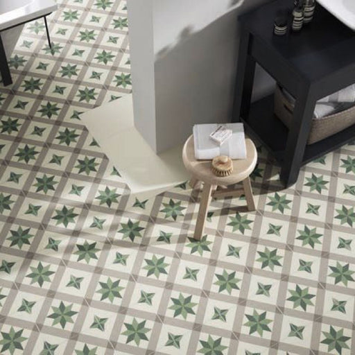 Riviera Menton Star Green Porcelain Wall & Floor Tile 25cm x 25cm