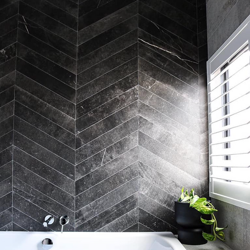 View full detailsMonzo Stone Chevron Titanium Tile 10cm x 53cm