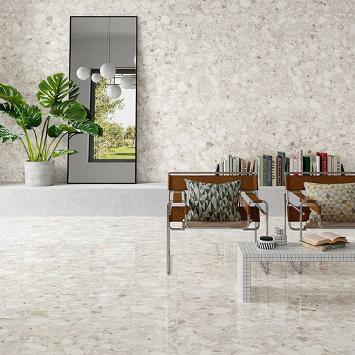 Venice Ivory Terrazzo Tile Polished Ivory 60cm x 60cm